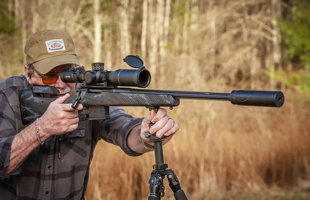I then switched to a Leupold Mark 5HD 3.6-18x44mm riflescope for a bit more magnification and began working at longer ranges with the rifle. I also mounted a standard adapter from Spartan Precision and did a lot of shooting from prone with a bipod, and from standing with a tripod. I shot fast to simulate hunting situations, and I had no trouble repetitively ringing 8- and 12-inch steel plates out to 500 yards. I conducted all the shooting from the bench and from field positions with the incredibly lightweight and compact Silencer Central Banish Backcountry suppressor attached.