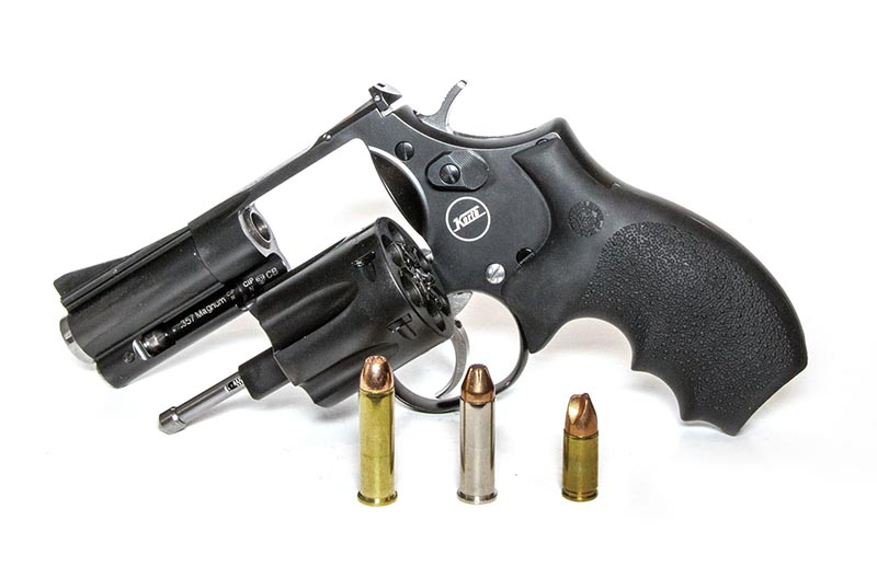 The Korth Carry Special is a short-barreled revolver, intended as the name suggests, for personal protection. It has a 2.75-inch barrel and weighs 33.6 ounces. It comes with a .38 Special/.357 Magnum cylinder and a clipless 9mm Luger cylinder—full moon clips aren’t required. It’s also fitted with a slimmed down and contoured rubber Hogue grip.