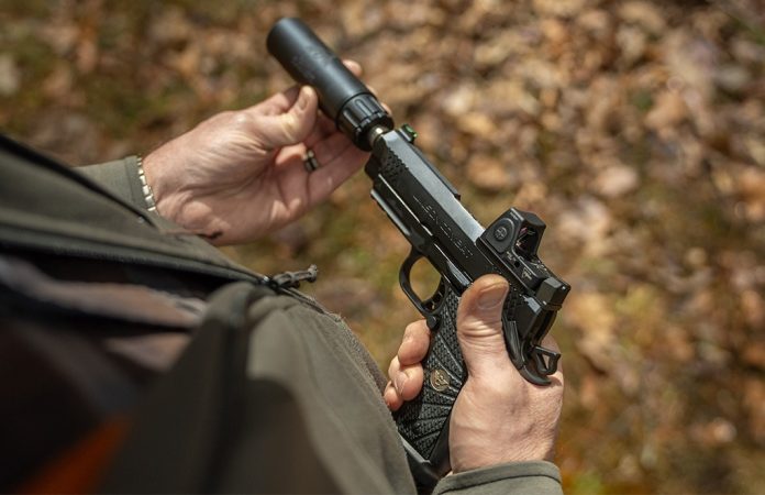 Suppressors can make handgun shooting more fun and less noisy, but it’s not just as simple as screwing a can to your barrel. You gotta have your sights right … or none of those muffled shots you fire will hit where you want them to.