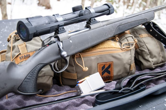 After arriving up north for my hunt, the first thing I noticed about the Kifaru Rogan was how easy it was to snap on and off, and how sturdy it was. The wide, insert-reinforced Battle Belt locks around you, and the load does not shift. It doesn’t flop like cheap so-called fanny packs. Since I would be walking several miles tracking bucks in the snow, the outfit needed to be rock-solid.