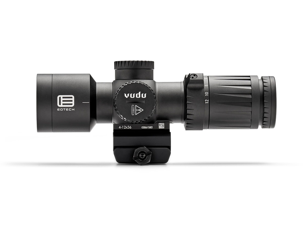 Who says small guns can’t have awesome magnified optics? EOTECH brought a lot to the table last year with its Vudu 3-9×32 SFP, and now the company is expanding its line of super short scopes with the 4-12×36 Vudu.