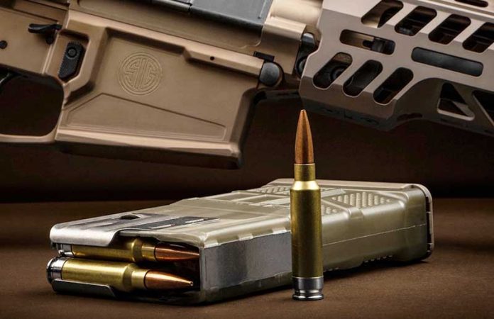 SIG’s entry to the program was the 6.8×51mm Common Cartridge chambered in its XM5 rifle and XM250 LMG. SIG’s new cartridge has a maximum overall length of 2.83 inches, which means it will load and feed from any 7.62 NATO (.308 Winchester) detachable box magazine. Other submissions to the program included manufacturers such as General Dynamics and Textron Systems.
