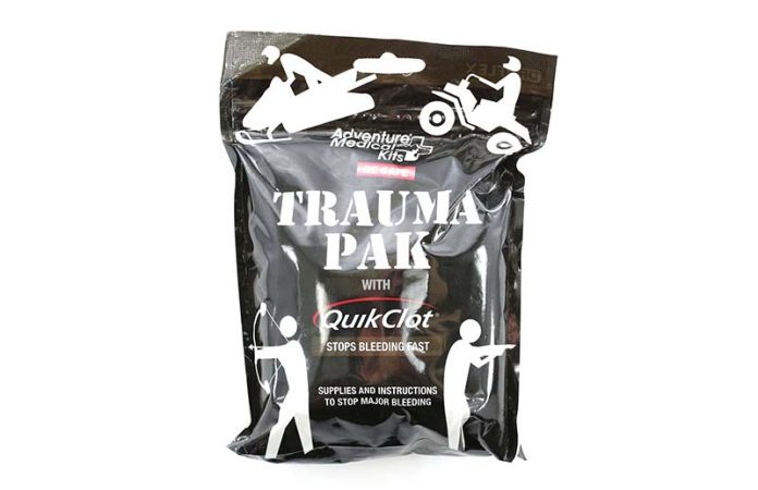 Adventure Medical Kits offers compact trauma kits that you can keep in a pocket, a bag or close at hand. The one I have close by is one of theirs with QuikClot as part of the package. In addition to the four different gauze dressing sizes, gloves tape and trauma pad, it has a packet of QuikClot—a hemostatic dressing that accelerates clotting. When you’re bleeding, the idea is to stop the bleeding as soon as possible.