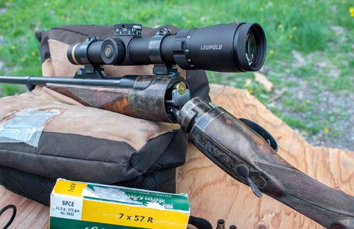 Dubbed the 7x57R (R for rimmed), it’s identical in dimension and performance to the rimless variety, except for the base and rim. While nowhere near as popular as the rimless version, it remains a sound choice for all-around hunting. For test ammo, I used Sellier & Bellot’s 173-grain load, at a muzzle velocity of 2,379 fps. The late 19th century formula of heavy-for-caliber bullets at a moderate muzzle velocity worked just fine then, and it will do the same in the early 21st century. Boxer primed, these cartridges are fully reloadable.