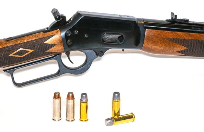 The Marlin 1894 lever action rifle has been with us as long as its name suggests, and it has been offered in a variety of configurations to include stainless steel and with 16- and even 24-inch barrels. The 1894 has also been chambered for a dozen different cartridges to include the .22 Magnum. Primarily it’s thought of as a revolver cartridge rifle because of the chamberings that have been the most popular in it like the .32-20 Winchester, .357 Magnum, .44-40 Winchester, .44 Magnum and .45 Colt. Marlin’s newest version is the most traditional version of the 1894, and it’s outfitted with a 20-inch round barrel, straight grip stock and the common barrel mounted semi-buckhorn sight.