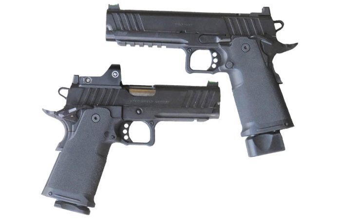 If you compete, you probably already know that STI, which has since morphed into Staccato, coined the 2011 name decades ago, transforming competition shooting and the pistols used. An authentic 2011 is a 1911-style platform with a steel slide and frame, less the grip portion. A polymer grip module bolts onto the steel frame to provide room for the thicker, double-stack magazine. By comparison, the standard 1911 platform uses a single-stack mag, and the grip is integral to the frame.