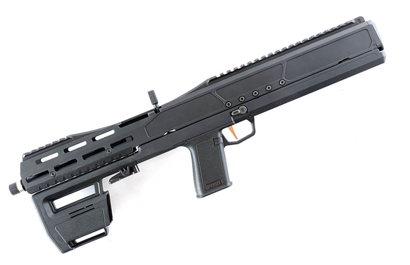 To use the Pivot form in its stored condition, you pull it out of the case, from behind the seat or wherever and hold the pistol grip in your firing hand. Press the unlock button and swing, slap or rotate the upper to lock, grab a magazine, insert in the pistol grip and slap the charging handle down. You carry loaded and have a chambered round. If the stock, as folded, is too short, you simply press the stock latch and slide the stock out as needed. It has 3 inches of travel, and while it’s still a tad short for long-armed gents like me, I find it entirely usable. If you don’t have a 7-foot wingspan, then the stock will be just fine for you. The ambidextrous safety lets you use the Pivot right- or left-handed, and from there it is safety off, aim and fire.