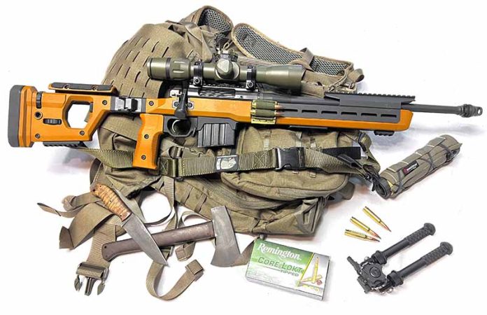 I chose a stock I’ve used from time to time on these pages, the Magpul 700 Pro, to give me a reliable base and folding stock capability. The overall length of the finished rifle, with suppressor removed, was just over 28-inch folded, truly backpack concealable. I wanted to make a gun that was not only packable but functional for the role of hunting at medium range, while not sacrificing compatibility with modern ARCA and optical systems.